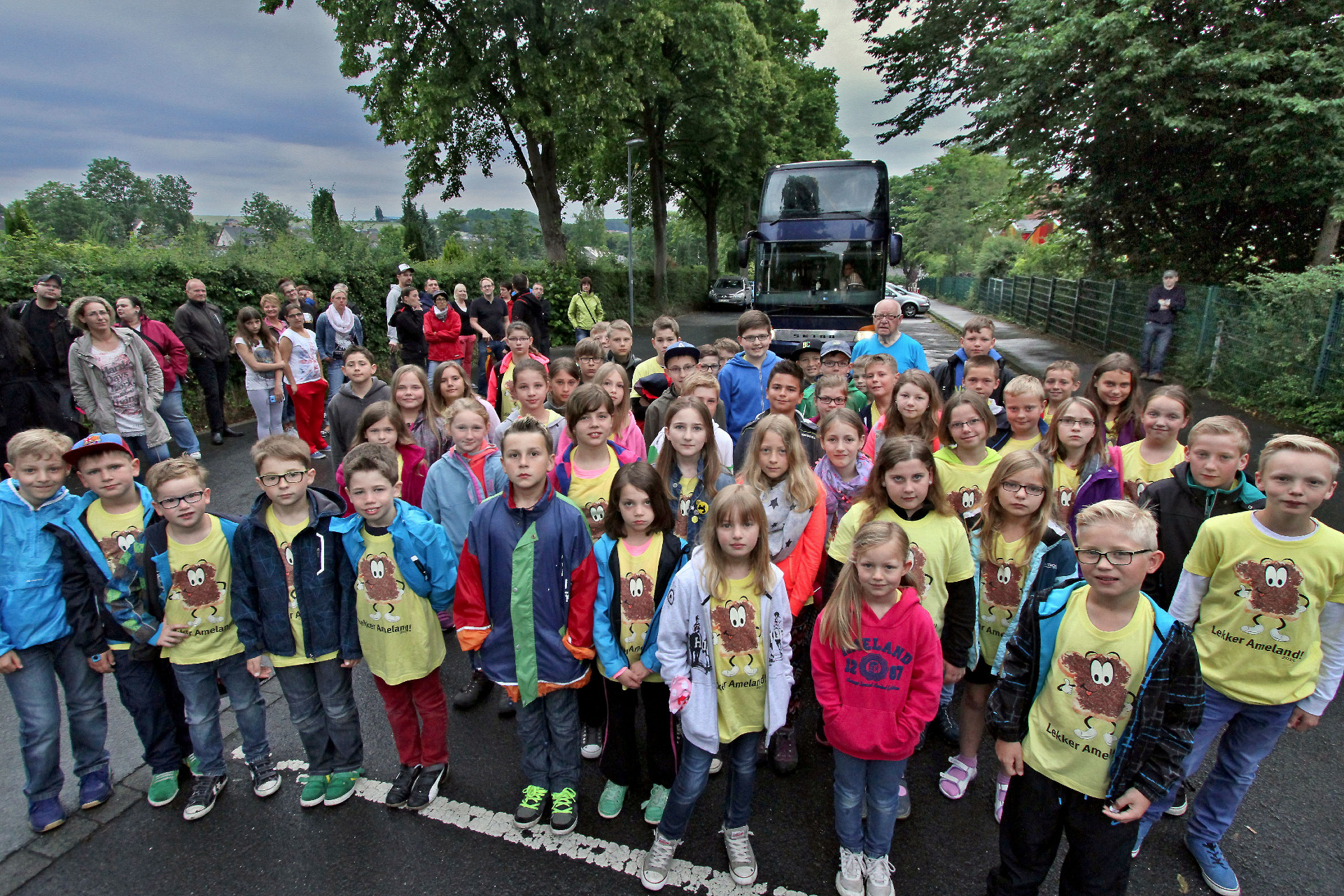 WICKEDE (RUHR) / AMELAND. Zur jährlichen Kinderferienfreizeit der Wickeder Caritas machten sich am heutigen frühen Samstagmorgen (27. Juni 2015) rund 60 Jungen und Mädchen auf den Weg. Versehen mit dem kirchlichen Reisesegen durch Pfarrer Thomas Metten ging es von der St.-Antonius-Kirche direkt in den Doppeldeckerbus, der bereits am St.-Josef-Kindergarten wartete.