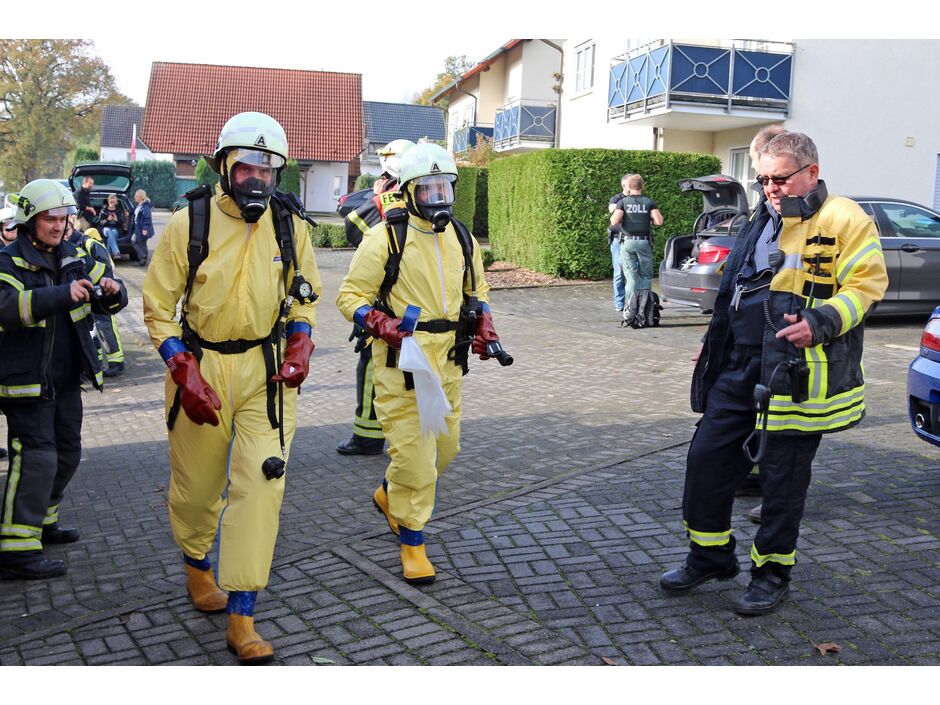 Großeinsatz des Zolls und der Feuerwehr an der Wickeder Straße 29 in Wiehagen. Ersten Recherchen zufolge wurde hier am heutigen Donnerstagmorgen (30. Oktober 2014) ein Drogenlabor in einem unauffälligen Mehrfamilienhaus direkt an der Straße entdeckt.